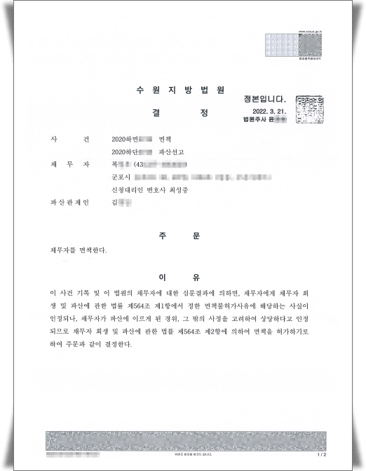 ¼ö¿øÁö¹æ¹ý¿ø Àç·®¸éÃ¥°áÁ¤ - ¸éÃ¥ºÒÇã°¡»çÀ¯¿¡ ÇØ´çÇÏ´Â ÆÄ»ê½Åû »ç·Ê ¡ß »ý ³â : 1943³â»ý¡ß °ÅÁÖÁö : ±ºÆ÷½Ã¡ß ä±ÇÀÚ : 1¡ß 乫ÃÑ¾× : 11,119,680¿ø¡ß ½Åû°á°ú : 乫ÀüºÎ¸éÃ¥¡ß ƯÀÌ»çÇ× : ÀÇ·ÚÀÎÀº ¹Ì³³ÇÑ °ü¸®ºñ µî ¾à 1100¸¸¿øÀÇ ¼Ò¾× 乫¸¦ ¼ö¿øÁö¹æ¹ý¿ø¿¡ °³ÀÎÆÄ»ê ¹× ¸éÃ¥ ½ÅûÀ» ÇÏ¿´½À´Ï´Ù.