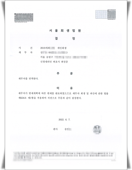 ¡ß °³ÀÎȸ»ý ¸éÃ¥°áÁ¤ : ÀÇ·ÚÀÎÀº ¼¿ïȸ»ý¹ý¿ø¿¡¼ ¾Æ·¡¿Í °°ÀÌ ¸éÃ¥°áÁ¤À» ¹Þ¾Ò½À´Ï´Ù.