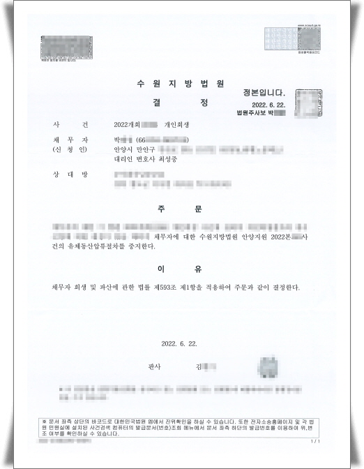 ÀÇ·ÚÀο¡°Ô´Â ´Ã¾î¸¸°¡´Â 乫¸¦ ÇØ°áÇÒ ¼ö ÀÖ´Â ´Ù¸¥ ¹æ¹ýÀÌ ¾ø¾î, ¼ö¿øÈ¸»ý¹ý¿ø¿¡ °³ÀÎȸ»ýÀ» ½ÅûÇÏ¸é¼ ÁøÇà ÁßÀÎ À¯Ã¼µ¿»ê¾Ð·ùÀýÂ÷¿¡ ´ëÇÑ ÁßÁö¸í·É½ÅûÀ» ÇÏ¿© ¾Æ·¡¿Í °°ÀÌ À¯Ã¼µ¿»ê °Á¦ÁýÇàÀ» ÁßÁöÇÑ´Ù´Â ÁßÁö¸í·ÉÀ» ¹Þ¾Ò½À´Ï´Ù.