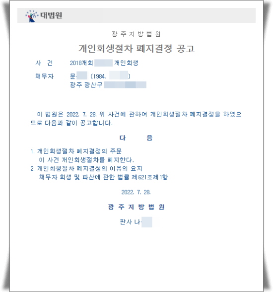 ÇÏÁö¸¸ °³ÀλçÁ¤À¸·Î °³ÀÎȸ»ý º¯Á¦±ÝÀ» ¹Ì³³ÇÏ¿© °³ÀÎȸ»ýÀýÂ÷ÆóÁö°áÁ¤À» ¹Þ°Ô µÇ¾ú°í, ÀúÈñ »ç¹«½Ç¿¡ ¿¬¶ôÀ» ÁÖ¼ÌÀ» ¶§´Â ÀÌ¹Ì Áï½ÃÇ×°í ±â°£ÀÌ µµ°úÇÑ »óŶó¼ ÇÒ ¼ö ¾øÀÌ Ãß¿ÏÇ×°í¸¦ ÁøÇàÇÏ¿´½À´Ï´Ù.