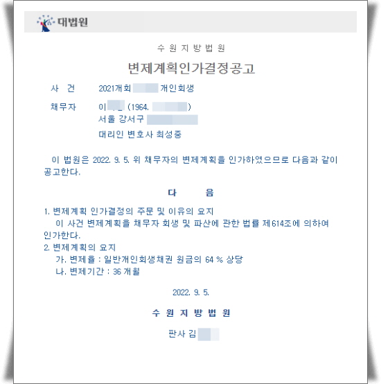 ¼ö¿øÈ¸»ý¹ý¿ø¿¡¼´Â ÀÇ·ÚÀÎÀÇ »ç°Ç¿¡ ´ëÇÏ¿© 36°³¿ù µ¿¾È ¿ø±ÝÀÇ 64% »ó´çÀ» º¯Á¦ÇÏ´Â °ÍÀ¸·Î Àΰ¡°áÁ¤À» ÇÏ¿´½À´Ï´Ù. ÀÇ·ÚÀÎÀº ¼ö¿øÈ¸»ý¹ý¿øÀÇ º¯Á¦°èȹÀΰ¡°áÁ¤À¸·Î³ª¸ÓÁö 乫 ¿ø±Ý 36%¿Í ÀÌÀÚ Ã¤¹«¸¦ ÅÁ°¨ ¹Þ°Ô µÇ¾ú½À´Ï´Ù.