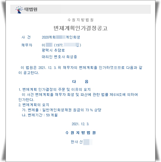 ¡ß ƯÀÌ»çÇ× : ÀÇ·ÚÀÎÀº °³ÀÎȸ»ýÀ» ½ÅûÇÏ¿© 2021. 12. 3. º¯Á¦°èȹÀΰ¡°áÁ¤À» ¹Þ¾Ò½À´Ï´Ù. ±×·¯³ª ÀÌÈÄ »çÁ¤º¯°æÀ¸·Î º¯Á¦°èȹ¾ÈÀ» º¯°æÇÏ¿©¾ßÇÒ »çÀ¯°¡ ¹ß»ýÇÏ¿© ´Ù½Ã ¼ö¿øÈ¸»ý¹ý¿ø¿¡ º¯Á¦°èȹº¯°æÇã°¡½ÅûÀ» ÇÏ¿´°í, ¼ö¿øÈ¸»ý¹ý¿øÀ¸·ÎºÎÅÍ ÀÇ·ÚÀÎÀÇ º¯Á¦°èȹº¯°æ¾ÈÀ» Àΰ¡ÇÑ´Ù´Â Çã°¡°áÁ¤À» ¹Þ¾Ò½À´Ï´Ù. º¯Á¦°èȹ¼öÁ¤Çã°¡½Åû°ú º¯Á¦°èȹº¯°æÇã°¡½ÅûÀº ´Ù¸¥ »ç°ÇÀÔ´Ï´Ù. ±×·¡¼ °³ÀÎȸ»ý»ç°Ç¿¡¼ º¯Á¦°èȹº¯°æ Àΰ¡°áÁ¤ »ç·Ê´Â ¸¹Áö ¾Ê½À´Ï´Ù. º¯Á¦°èȹº¯°æÇã°¡½Åû¿¡ ´ëÇÏ¿© ±Ã±ÝÇϽŠºÐÀº ¾ðÁ¦µçÁö ÀúÈñ »ç¹«½Ç·Î ¿¬¶ôÁÖ¼¼¿ä.
