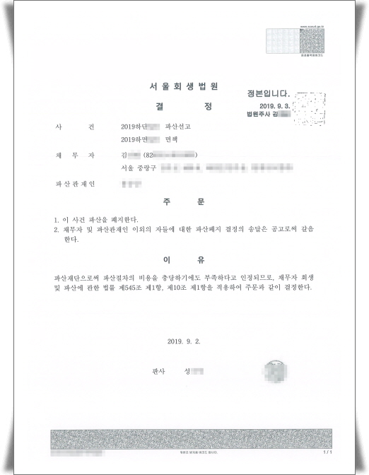 ¼¿ïȸ»ý¹ý¿ø ÆÄ»êÆóÁö°áÁ¤ ¡ß »ý ³â : 1982³â »ý¡ß °ÅÁÖÁö : ¼¿ï½Ã Áß¶û±¸¡ß ÆÄ»êÆóÁö°áÁ¤ÀÏ : 2019³â 9¿ù 2ÀÏ