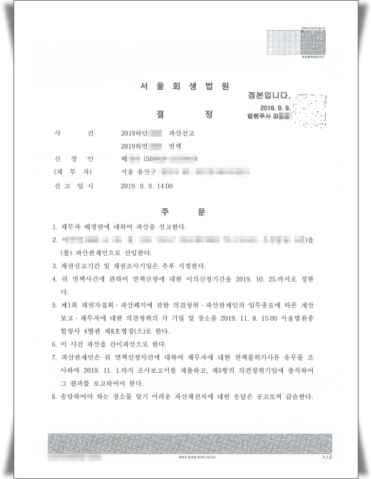 ¡ß ƯÀÌ»çÇ× : ½ÅûÀÎÀº ¹è¿ìÀÚÀÇ »ç¸Á ÈÄ È¦·Î Àڳฦ ºÎ¾çÇÏ¸é¼ »ç¾÷Àڱݰú »ýȰºñ·Î »ç¿ëÇÑ Ã¤¹«¸¦ º¯Á¦ÇÏÁö ¸øÇØ °á±¹ °³ÀÎÆÄ»ê ¹× ¸éÃ¥½Åû¿¡ À̸£°Ô µÇ¾ú½À´Ï´Ù. »ç°ÇÀº °üÇÒ¹ý¿øÀÎ ¼¿ïȸ»ý¹ý¿ø¿¡ °³ÀÎÆÄ»ê ¹× ¸éÃ¥½ÅûÀ» ÇÏ¿´À¸¸ç, ÇöÀç´Â ÆÄ»ê¼±°í¿Í ÇÔ²² ÆÄ»ê°üÀçÀÎÀÌ ¼±ÀÓµÈ »óÅÂÀÔ´Ï´Ù.