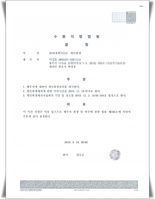 ÇÏÁö¸¸ ½Åû´ç½ÃºÎÅÍ ¿¹»óÀ» Çϰí ÀÇ·ÚÀβ² ¼³¸íÇÑ ºÎºÐ¿¡ ´ëÇÑ º¸Á¤±Ç°í¸¦ ¹Þ¾Ò±â ¶§¹®¿¡ ÀÇ·ÚÀεµ ´çȲÇÏÁö ¾Ê°í, ÀúÈñµµ Å« ¹«¸® ¾øÀÌ ¼ö¿øÁö¹æ¹ý¿øÀ¸·Î ºÎÅÍ °³ÀÌȸ»ýÀýÂ÷¸¦ °³½ÃÇÑ´Ù´Â ³»¿ëÀÇ '°³ÀÎȸ»ýÀýÂ÷ °³½Ã°áÁ¤¹®'À» ¹Þ¾Ò½À´Ï´Ù.