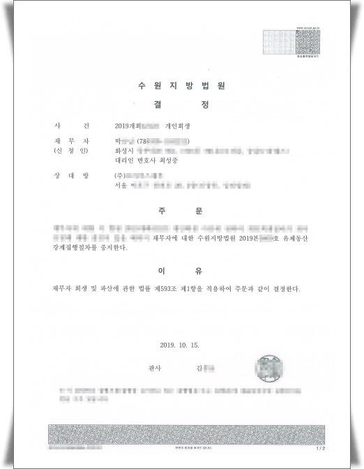 ±×·¡¼ °³ÀÎȸ»ý¹ý¿ø¿¡ ä±ÇÀÚÀÇ À¯Ã¼µ¿»ê°Á¦ÁýÇàÀýÂ÷¸¦ ÁßÁöÇÏ¿© ´Þ¶ó´Â ÁßÁö¸í·É½ÅûÀ» ÇÏ¿´°í, ½Åû°á°ú´Â ¾Æ·¡¿Í °°ÀÌ Ã¤±ÇÀÚÀÇ "