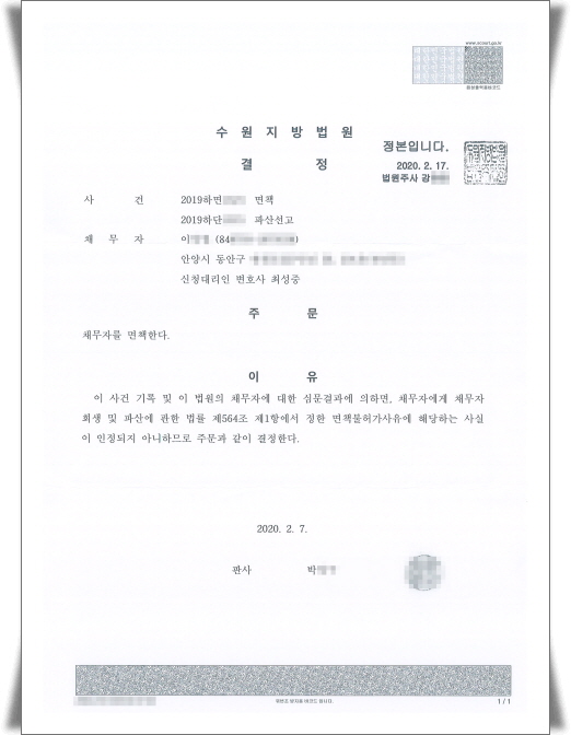 ¼ö¿øÁö¹æ¹ý¿ø¿¡¼´Â ½ÅûÀÎÀÇ °³ÀÎÆÄ»ê»ç°Ç¿¡ ´ëÇÏ¿© ÆÄ»ê°üÀçÀÎÀ» ¼±ÀÓÇϰí, ¼±ÀÓµÈ ÆÄ»ê°üÀçÀÎÀº ½ÅûÀÎÀÇ Ã¤¹«Áõ´ë °æÀ§¿Í ¸éÃ¥ºÒÇã°¡»çÀ¯ µîÀ» Á¶»çÇÏ¿´½À´Ï´Ù.