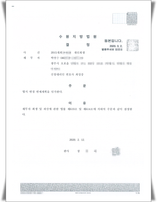 ¡ß ƯÀÌ»çÇ× : ÀÇ·ÚÀÎÀº °³ÀÎȸ»ýÀ» ½ÅûÇÏ¿© º¯Á¦°èȹÀΰ¡°áÁ¤À» ¹Þ¾ÒÁö¸¸, ÀÌÈÄ º¯Á¦°èȹ¾ÈÀ» º¯°æÇÏ¿©¾ßÇÒ »çÀ¯°¡ ÀÖ¾î ´Ù½Ã ¼ö¿øÁö¹æ¹ý¿ø¿¡ º¯Á¦°èȹº¯°æÇã°¡½ÅûÀ» ÇÏ¿´½À´Ï´Ù. ÀÇ·ÚÀÎÀÇ º¯Á¦°èȹ¾Èº¯°æÇã°¡½Åû¿¡ ´ëÇÏ¿© ¼ö¿øÁö¹æ¹ý¿ø¿¡¼´Â ÀÇ·ÚÀÎÀÇ º¯Á¦°èȹº¯°æ¾ÈÀ» Àΰ¡ÇÑ´Ù´Â °áÁ¤À» ÇÏ¿´½À´Ï´Ù.