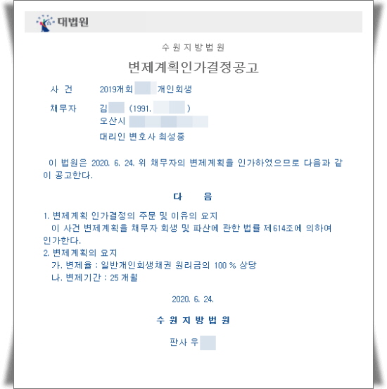 ±×·±µ¥ ÀúÈñ »ç¹«½Ç¿¡¼ ÀÇ·ÚÀο¡ ´ëÇÑ °³ÀÎȸ»ý»ó´ãÀ» ÁøÇàÇÑ °á°ú ÃæºÐÈ÷ °³ÀÎȸ»ýÀÌ °¡´ÉÇÑ »ç°ÇÀÌ¾î¼ ÀÇ·ÚÀÎÀÇ °³ÀÎȸ»ý»ç°ÇÀ» ¸Ã¾Æ ÁøÇàÇÏ¿´°í, ±× °á°ú´Â ¾Æ·¡¿Í °°ÀÌ ¼ö¿øÁö¹æ¹ý¿øÀ¸·ÎºÎÅÍ °³ÀÎȸ»ý Àΰ¡°áÁ¤À» ¹Þ¾Ò½À´Ï´Ù.