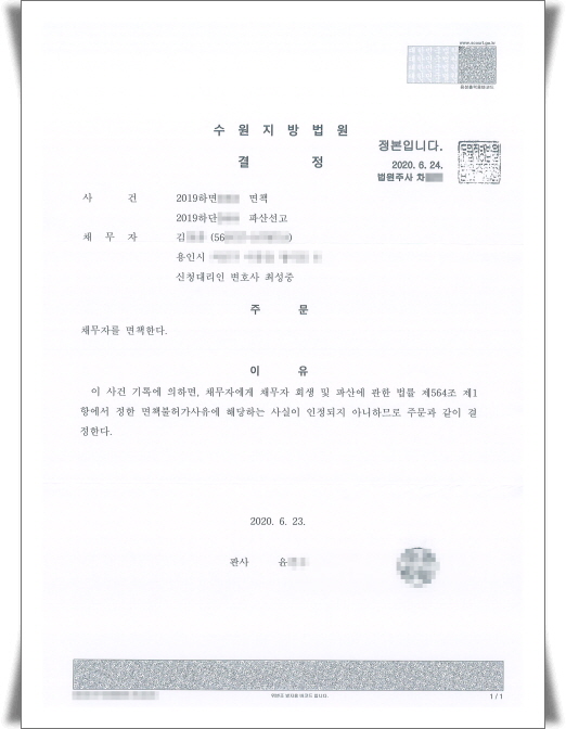 ¼ö¿øÁö¹æ¹ý¿ø °³ÀÎÆÄ»ê ¸éÃ¥°áÁ¤¹® ¡ß »ý ³â : 1956³â»ý¡ß °ÅÁÖÁö : °æ±âµµ ¿ëÀνà óÀα¸¡ß ä±ÇÀÚ : 3¡ß 乫ÃÑ¾× : 103,879,500¿ø ¡ß ½Åû°á°ú : 乫ÀüºÎ¸éÃ¥¡ß º¸Ãæ»çÇ× : 乫ÀÚ¿¡°Ô´Â Ä«µå»ç¿Í ÀºÇà, ±×¸®°í º¸Çè»ç ½Å¿ë´ëÃâ µîÀ¸·Î ä±ÇÀÚ°¡ 7±ºµ¥ ÀÖ¾ú´Âµ¥, ´ëºÎºÐÀÇ Ã¤¹«°¡ °ø»çä±ÇÀ¸·Î Èí¼öµÇ¸é¼ ä±ÇÀÚ°¡ 3±ºµ¥·Î ÁÙ¾ú½À´Ï´Ù. ±× °úÁ¤¿¡¼ ÀÌÀÚ°¡ ¿ø±ÝÀÇ 4¹è°¡ µÇ¾ú°í, 乫Àڷμ´Â 乫¸¦ º¯Á¦ÇÒ ¹æ¹ýÀÌ ¾ø¾î ¼ö¿øÁö¹æ¹ý¿ø¿¡ °³ÀÎÆÄ»ê¸éÃ¥½ÅûÀ» ÇÏ¿´½À´Ï´Ù.