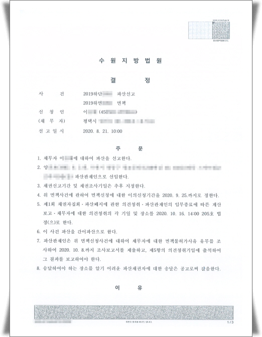 ¼ö¿øÁö¹æ¹ý¿ø¿¡¼´Â ÀÇ·ÚÀÎÀÇ °³ÀÎÆÄ»ê½Åû¿¡ ´ëÇÏ¿© ¾Æ·¡¿Í °°ÀÌ ÆÄ»ê¼±°í¸¦ ÇÏ¿´½À´Ï´Ù.