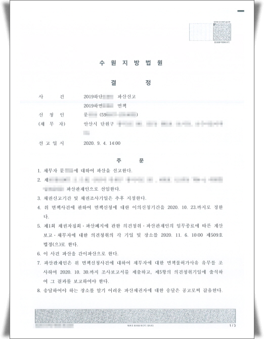 ¼ö¿øÁö¹æ¹ý¿ø¿¡¼´Â ÀÇ·ÚÀÎÀÇ °³ÀÎÆÄ»ê½Åû¿¡ ´ëÇÏ¿© ¾Æ·¡¿Í °°ÀÌ ÆÄ»ê¼±°í¸¦ ÇÏ¿´½À´Ï´Ù.