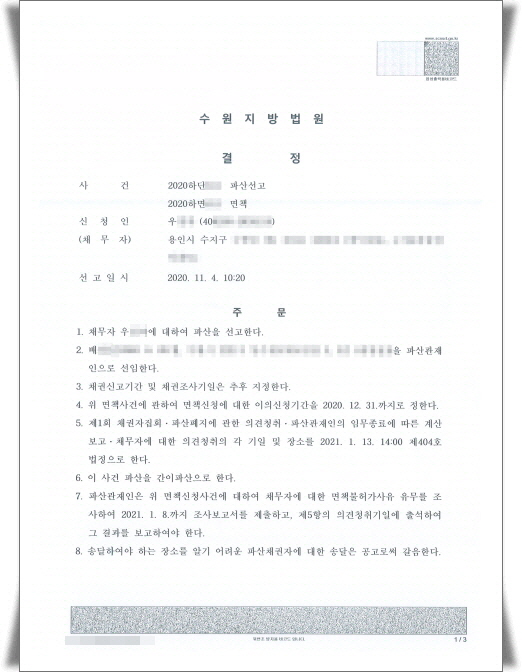 ÀÇ·ÚÀÎÀº Áö³ 11¿ù ¾Æ·¡¿Í °°ÀÌ ÆÄ»ê¼±°í°áÁ¤À» ¹Þ°í ÇöÀç ÆÄ»ê°üÀçÀÎÀÌ ¼±ÀÓµÇ¾î ÆÄ»êÀýÂ÷°¡ ÁøÇàÁß¿¡ ÀÖ½À´Ï´Ù.