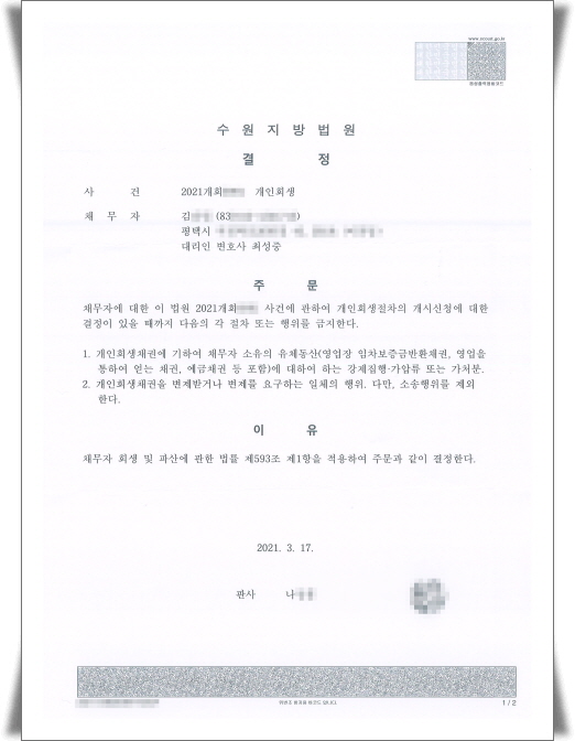 °³ÀÎȸ»ý ½Åû°ú µ¿½Ã¿¡ ä±ÇÀÚµéÀÇ Ã¤¹«µ¶ÃËÀ» ÇÇÇϱâ À§ÇÑ ±ÝÁö¸í·É ½Åû¼µµ ÇÔ²² Á¦ÃâÇÏ¿´°í, ¼ö¿øÁö¹æ¹ý¿ø¿¡¼´Â ÀÇ·ÚÀÎÀÇ ±ÝÁö¸í·É½Åû¿¡ ´ëÇÏ¿© ¾Æ·¡¿Í °°ÀÌ ±ÝÁö¸í·É °áÁ¤À» ÇÏ¿´½À´Ï´Ù.