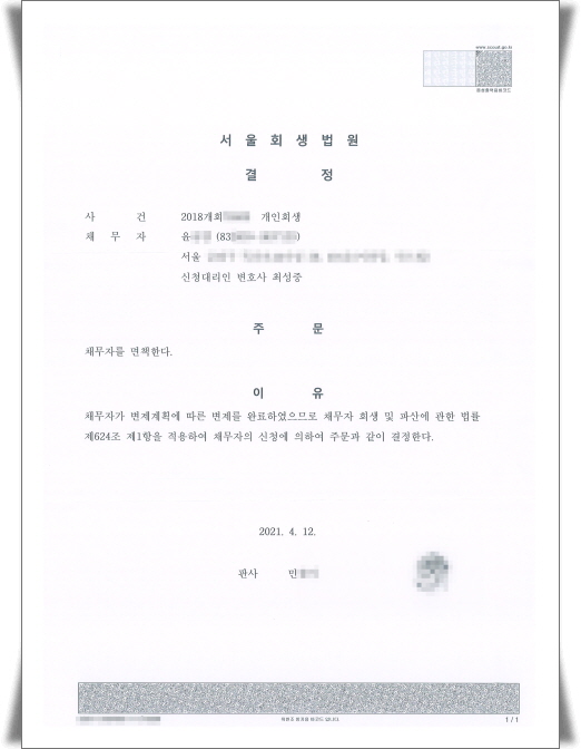 <¼¿ïȸ»ý¹ý¿ø ¸éÃ¥°áÁ¤ ¼º°ø»ç·Ê>- °³ÀÎȸ»ý º¯Á¦¿Ï·á ÈÄ Ã¤¹« ¸éÃ¥°áÁ¤ ¼¿ïȸ»ý¹ý¿ø °³ÀÎȸ»ý ¸éÃ¥°áÁ¤