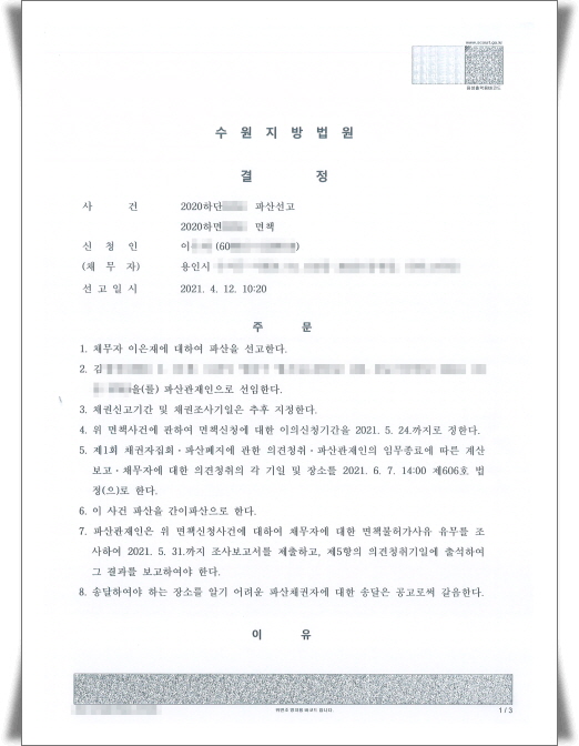 ¡ß ƯÀÌ»çÇ× : ¿ëÀνõµ ¼ö¿øÁö¹æ¹ý¿ø °üÇÒÀÔ´Ï´Ù. °³ÀÎÆÄ»ê»ç°ÇÀº ÆÄ»ê°üÀçÀÎÀÌ ¼±ÀÓµÇ¸é¼ Á¶»çÀýÂ÷ µîÀÌ ÁøÇàµÇ±â ¶§¹®¿¡ ÆÄ»ê°üÀçÀÎ ¸é´ã½Ã ¼±ÀÓµÈ ´ë¸®ÀÎÀÇ µµ¿òÀ» ¹Þ´Â°Ô °¡Àå ÁÁ½À´Ï´Ù.