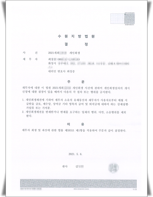ä±ÇÀÚÀÇ Ã¤¹«µ¶ÃËÀÌ ²÷ÀÌÁö ¾Ê´Â »óȲÀ̾úÁö¸¸ Ãë¾÷À» ÇØ¼ ¾ò´Â ¼öÀÔÀ¸·Î´Â 乫¸¦ º¯Á¦ÇÒ ¼ö°¡ ¾ø¾ú°í, °á±¹ ¼ö¿øÁö¹æ¹ý¿ø¿¡ °³ÀÎȸ»ýÀ» ½ÅûÇÏ¸é¼ ±ÝÁö¸í·É½ÅûÀ» ÇÔ²² Á¦ÃâÇß½À´Ï´Ù.