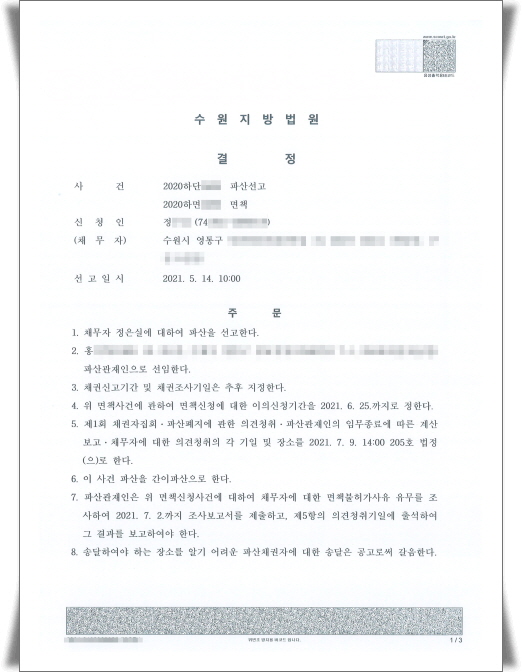 °³ÀÎÆÄ»ê½ÅûÀ» ÇÏ¼Ì´Ù¸é ÆÄ»ê¼±°í ÈÄ¿¡¾ß 乫ÀÚ¿¡ ´ëÇÑ ¸éÃ¥ºÒÇã°¡ »çÀ¯µîÀ» Á¶»çÇϱ⠶§¹®¿¡ ÆÄ»ê¼±°í ÀÌÈÄÀÇ ÀýÂ÷°¡ ´õ Áß¿äÇÕ´Ï´Ù.