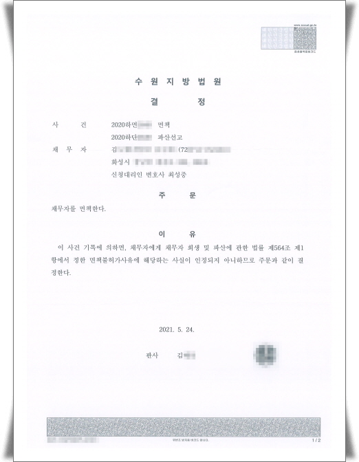 <¼ö¿ø°³ÀÎÆÄ»ê¸éÃ¥½Åû ¼º°ø»ç·Ê>- »ó¼Ó乫 °³ÀÎÆÄ»ê½Åû ¼º°ø»ç·Ê ¼ö¿øÁö¹æ¹ý¿ø ¸éÃ¥°áÁ¤¹® - »ó¼Ó乫 ÀüºÎ¸éÃ¥ ¼º°ø»ç·Ê ¡ß »ý ³â : 1972³â»ý¡ß °ÅÁÖÁö : °æ±âµµ ȼº½Ã¡ß ä±ÇÀÚ : 1¡ß 乫ÃÑ¾× : 231,469,477¿ø ¡ß ½Åû°á°ú : ¸ð¿¡°Ô »ó¼ÓÇÑ Ã¤¹« ÀüºÎ ¸éÃ¥¡ß ƯÀÌ»çÇ× : ÀÇ·ÚÀÎÀº °¡Á·ÀÇ »ç¾÷½ÇÆÐ·Î »ýȰÀÌ ¾î·Á¿ö Á³½À´Ï´Ù.