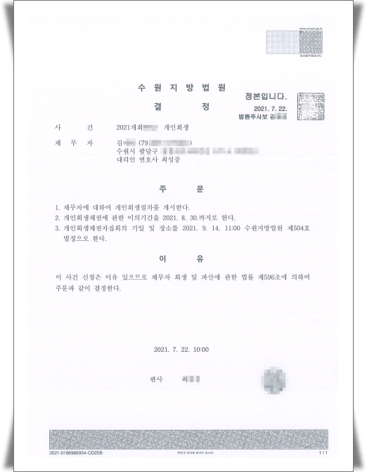 ÀÇ·ÚÀÎÀÇ »ç°ÇÀ» ½É¸®ÇÑ ¼ö¿øÁö¹æ¹ý¿ø¿¡¼´Â ¾Æ·¡¿Í °°ÀÌ °³ÀÎȸ»ýÀýÂ÷°³½Ã°áÁ¤À» ÇÏ¿´°í, ä±ÇÀÚ°¡ Á¦±âÇÑ ±Þ¿©°¡¾Ð·ù´Â ÇöÀç ÁýÇàÀÌ ÇØÁ¦ µÇ¾ú½À´Ï´Ù.