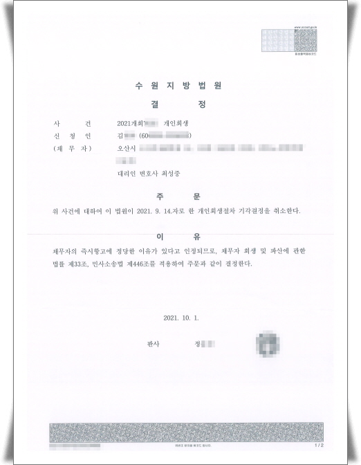 ¡ß ±â°¢°áÁ¤¿¡ ´ëÇÑ Áï½ÃÇ×°í °á°ú : °³ÀÎȸ»ýÀýÂ÷ ±â°¢°áÁ¤À» Ãë¼ÒÇÑ´Ù´Â °áÁ¤