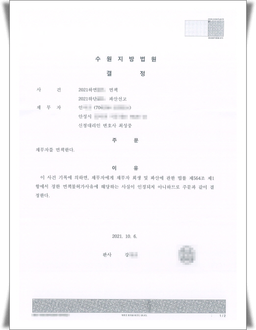 ÀÏ¿ëÁ÷À¸·Î ÀÏÀ» ÇÏ´õ¶óµµ ½Å¿ëÀÌ ÁÁÁö ¾Ê¾Æ ±Þ¿©ÅëÀåµµ ¸¸µé¼ö°¡ ¾ø´Â »óȲ¿¡¼ ´õÀÌ»ó 乫¸¦ ÇØ°áÇÒ ´Ù¸¥ ¹æ¹ýÀÌ ¾ø¾î ¼ö¿øÁö¹æ¹ý¿ø¿¡ °³ÀÎÆÄ»ê ¹× ¸éÃ¥½ÅûÀ» ÇÏ¿´°í, ÀÌÈÄ ÆÄ»ê¹ý¿øÀ¸·ÎºÎÅÍ ¸éÃ¥°áÁ¤À» ¹Þ¾Æ ¸ðµç 乫°¡ ÅÁ°¨µÇ¾ú½À´Ï´Ù.