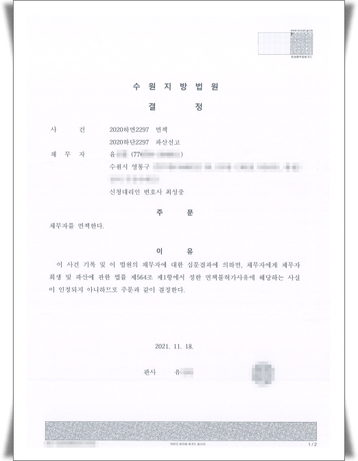 < ¼ö¿ø °³ÀÎÆÄ»ê¸éÃ¥°áÁ¤ ¼º°ø »ç·Ê >