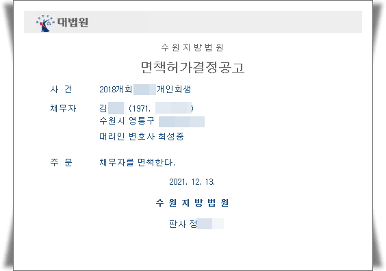 ¡ß °³ÀÎȸ»ý ¸éÃ¥Çã°¡°áÁ¤ÀÏ : 2021. 12. 13.