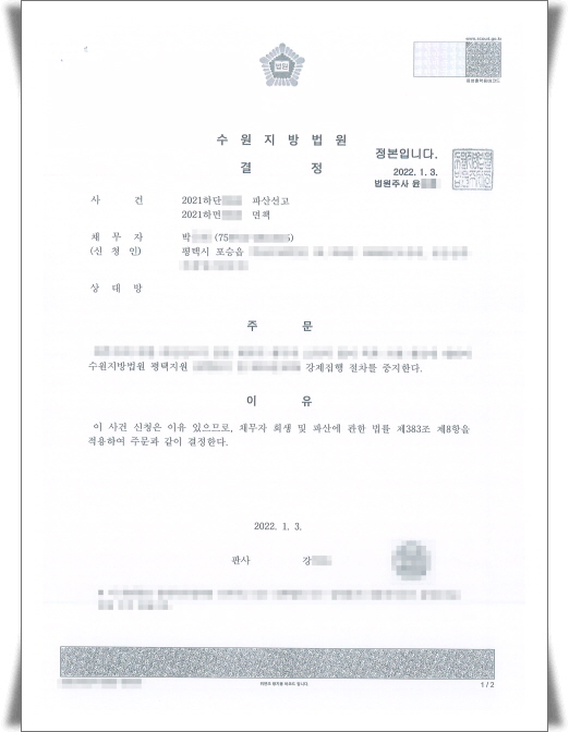 °³ÀÎÆÄ»êÀ» ½ÅûÇÑ ÀÇ·ÚÀο¡°Ô ä±ÇÀÚ°¡ °Á¦ÁýÇàÀ» ½ÅûÇÏ¿© º°µµ·Î °Á¦ÁýÇàÀ» ÁßÁöÇØ ´Þ¶ó´Â ÁßÁö¸í·É½ÅûÀ» Çß½À´Ï´Ù.