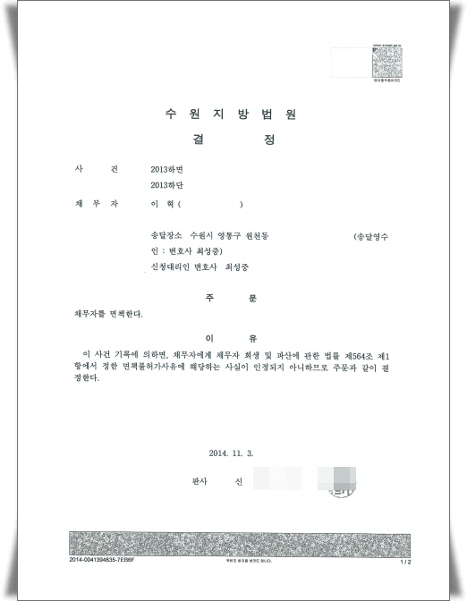 ¾Æ·¡´Â ÃÑ Ã¤¹«¾×ÀÌ 9,046,347¿øÀΠ乫ÀÚ°¡ ÆÄ»ê¸éÃ¥½ÅûÀ» ÇÏ¿© ¸éÃ¥°áÁ¤À» ¹ÞÀº »ç·ÊÀÔ´Ï´Ù.