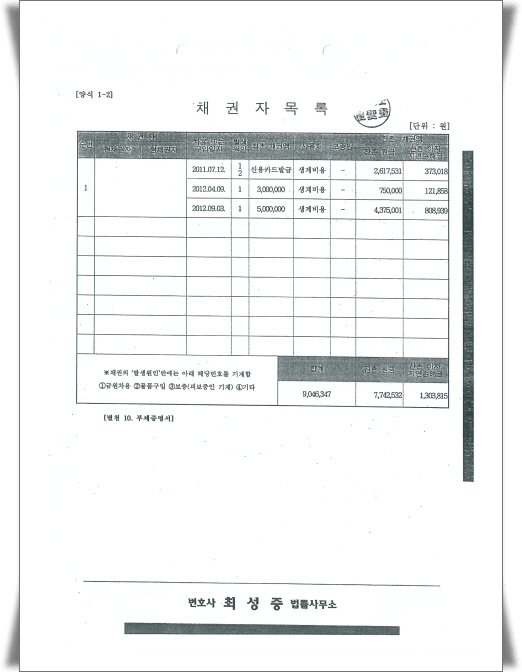 ¸éÃ¥°áÁ¤À» ¹ÞÀº °³ÀÎÆÄ»ê¸éÃ¥½Åû»ç°ÇÀÇ Ã¤±ÇÀÚ¸ñ·Ï°ú ºÎäÁõ¸í¼µµ ÇÔ²² ¿Ã·Áº¾´Ï´Ù.