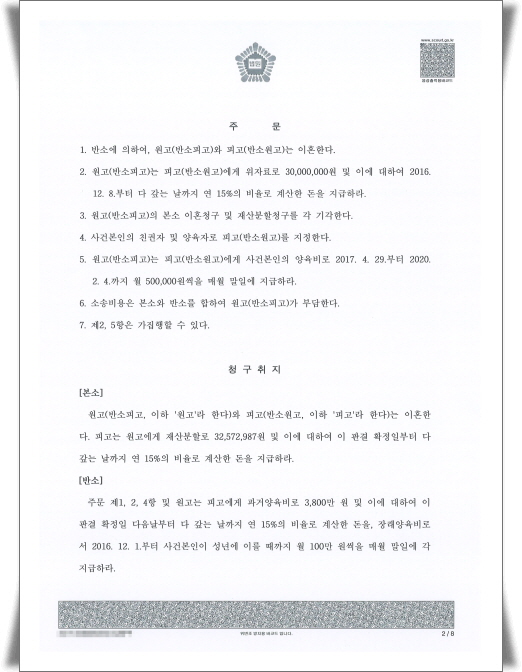 ±× °á°ú ¹ý¿ø¿¡¼´Â ¿ø°íÀÇ ÀÌȥû±¸¸¦ ±â°¢Çϰí, ÇǰíÀÇ ¹Ý¼Ò û±¸¸¦ ¹Þ¾Æµé¿© ÀÌÈ¥À» °áÁ¤Çß½À´Ï´Ù. ¾Æ¿ï·¯ ¿ø°í°¡ ÇÇ°í¿¡°Ô À§ÀÚ·á 3õ¸¸¿øÀ» Áö±ÞÇϰí, ¾çÀ°ºñ·Î ¸Å¿ù 50¸¸¿ø¾¿ Áö±ÞÇ϶ó´Â ÆÇ°áÀ» ³»·È½À´Ï´Ù.