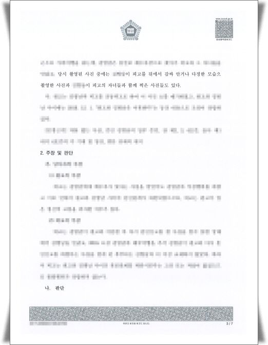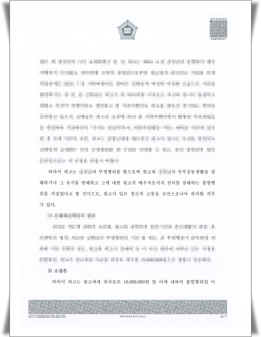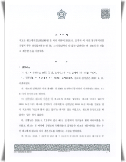 ±×·¡¼ ÀúÈñ »ç¹«½Ç¿¡¼ ¹è¿ìÀÚ¸¦ »ó´ë·Î ÀÌÈ¥¼Ò¼ÛÀ» ÁøÇàÇÏ¸é¼ ¹è¿ìÀÚ¿Í ºÎÁ¤ÇàÀ§¸¦ ÇÑ »ó´ë¹æ ¿©¼ºÀ» »ó´ë·Î À§ÀÚ·á(¼ÕÇØ¹è»ó) û±¸¸¦ ÇÏ¿´½À´Ï´Ù.