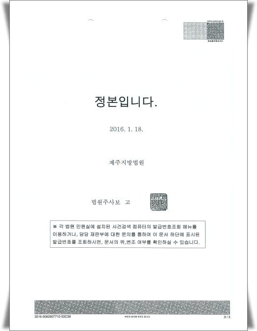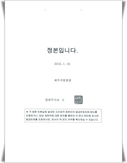 - Á¦ÁÖÁö¹æ¹ý¿ø °³ÀÎȸ»ý ÅëÁö¼­ -