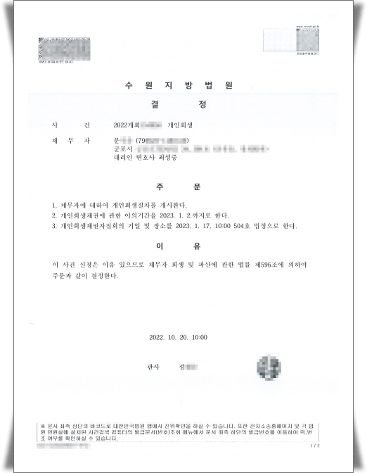 <¼ö¿øÈ¸»ý¹ý¿ø °³ÀÎȸ»ý °³½Ã°áÁ¤¹®>