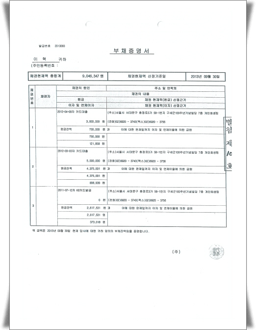 ¸éÃ¥°áÁ¤À» ¹ÞÀº °³ÀÎÆÄ»ê¸éÃ¥½Åû»ç°ÇÀÇ Ã¤±ÇÀÚ¸ñ·Ï°ú ºÎäÁõ¸í¼µµ ÇÔ²² ¿Ã·Áº¾´Ï´Ù.