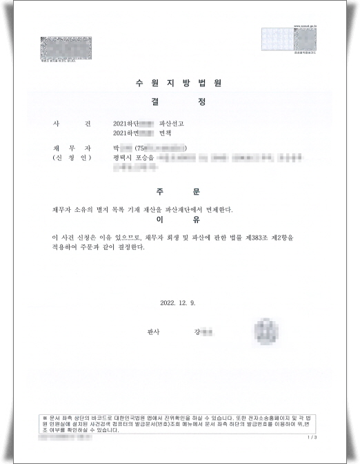 <¼ö¿øÈ¸»ý¹ý¿ø ¸éÁ¦Àç»ê°áÁ¤¹®>