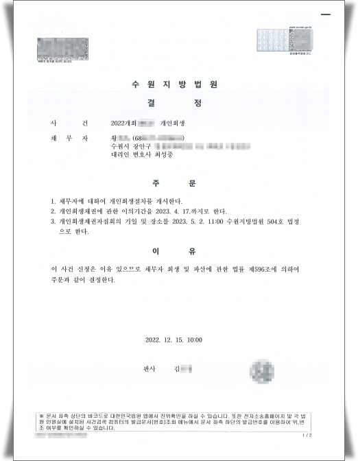 <¼ö¿øÈ¸»ý¹ý¿ø °³ÀÎȸ»ý °³½Ã°áÁ¤¹®>