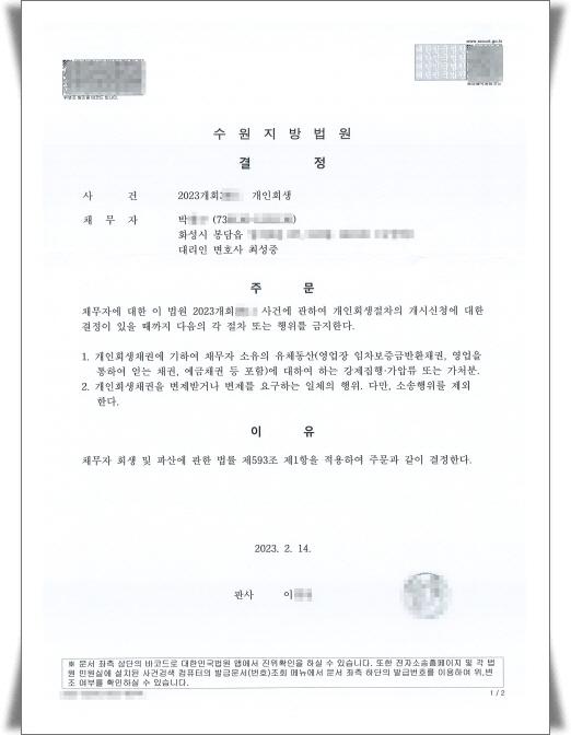 °³Àλç¾÷À» ÇÏ´Â °æ¿ì »ç¾÷¿ë°èÁÂ(¿¹±Ýä±Ç)³ª ÀÓÂ÷º¸Áõ±Ý(ÀÓÂ÷º¸Áõ±Ý¹Ýȯä±Ç)ÀÌ ¾Ð·ù µÇ´Â °æ¿ì ¿µ¾÷Ȱµ¿¿¡ ¾î·Á¿òÀÌ ¿¹»óµÇ¹Ç·Î ¼ö¿øÈ¸»ý¹ý¿ø¿¡ ±ÝÁö¸í·É½ÅûÀ» Çß½À´Ï´Ù.
